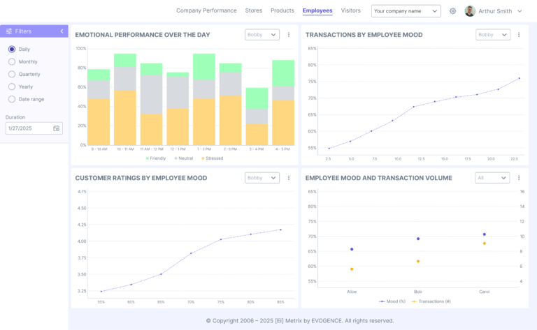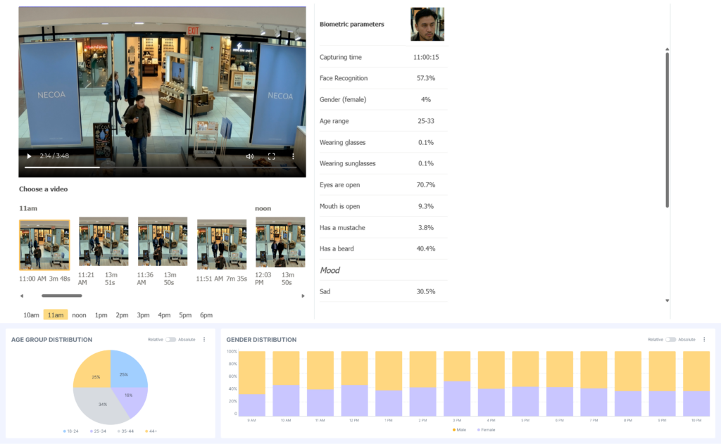 The analytics platform transforms these signals into clear visual insights, revealing visitor profiles, emotional trends, and differences in engagement across the space.